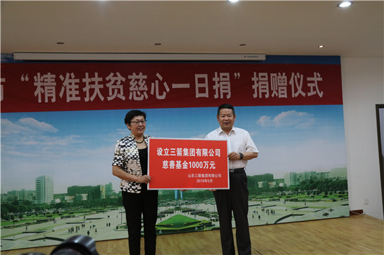 參加濟(jì)南市“精準(zhǔn)扶貧慈心一日捐” 設(shè)立“三箭集團(tuán)愛(ài)心慈善基金”