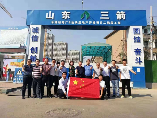 國慶期間,三箭股份公司領導班子成員及各項目公司經理兵分兩路,先后到仁和家園、馨陽嘉苑項目、天馬相城、嵐橋大廈、糧食局食品產業(yè)園、齊魯工業(yè)大學實訓基地、和平廣場、瑞福廣場等在建重點工程進行走訪慰問,對節(jié)日期間仍堅守工作崗位的一線員工致以節(jié)日的問候和祝福。走訪前,為慶祝中華人民共和國成立70周年,股份公司領導班子成員及各項目公司經理開展了“我與國旗合個影”活動,發(fā)自內心地祝福偉大祖國國富民強、繁榮昌盛,集團公司蓬勃發(fā)展、再創(chuàng)輝煌。走訪期間,大家在項目上集中觀看了國慶閱兵式,并紛紛表示為閱兵式的豪邁盛大而震撼,為祖國強大而驕傲,抒發(fā)了愛國情懷。走訪期間,公司領導重點要求抓住近期這段建筑黃金季節(jié),合理安排工序,科學組織生產,提前考慮揚塵、冬季施工、材料供應不及時等不利因素,確保工程按照計劃順利完成。